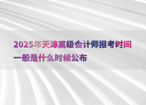 2025年天津高级会计师报名时间安排在1月3日9:00至1月24日12:00。