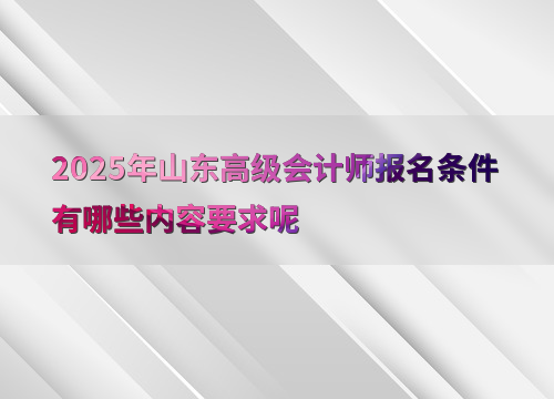 2025年山东高级会计师报名时间为1月6日至1月24日12:00。