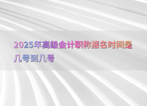 2025年高级会计职称考试的报名时间从**2025年1月3日**开始,至**1月24日**截止。