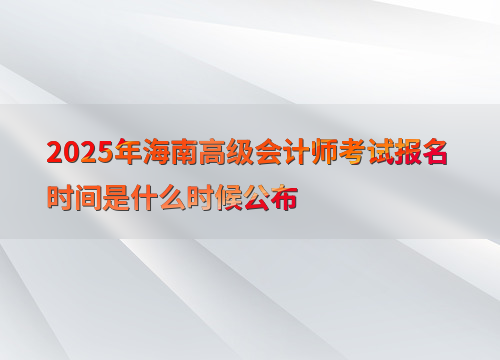 2025年海南高级会计师考试报名时间为1月3日10:00至1月24日12:00。