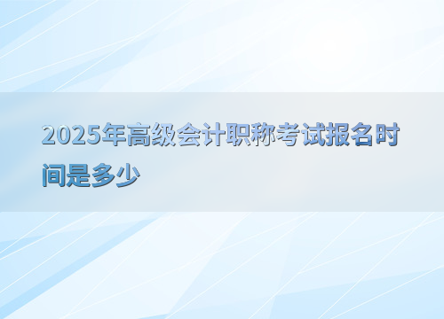 2025年高级会计职称考试的报名时间已经明确,考生需在2025年1月3日至1月24日期间完成报名。