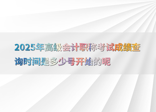 2025年高级会计职称成绩查询时间为7月4日,完成数据核验及评卷质量抽查后,成绩将在全国会计人员统一服务管理平台公布。