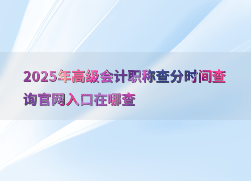 2025年高级会计职称成绩查询时间为7月4日,完成数据核验及评卷质量抽查后,成绩将在全国会计人员统一服务管理平台公布。