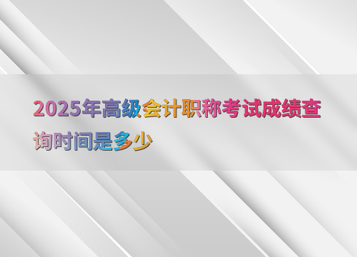 2025年高级会计职称成绩查询时间为7月4日,完成数据核验及评卷质量抽查后,成绩将在全国会计人员统一服务管理平台公布。