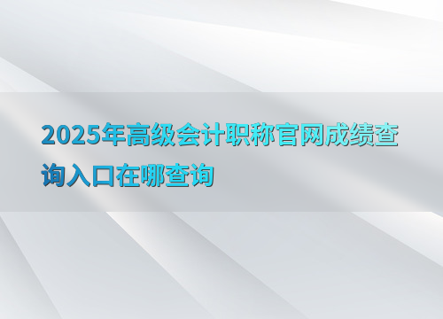 2025年高级会计职称成绩查询时间为7月4日,完成数据核验及评卷质量抽查后,成绩将在全国会计人员统一服务管理平台公布。