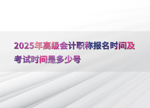 2025年高级会计职称考试将于**5月17日**举行,考试科目为《高级会计实务》,考试时长为**210分钟**。