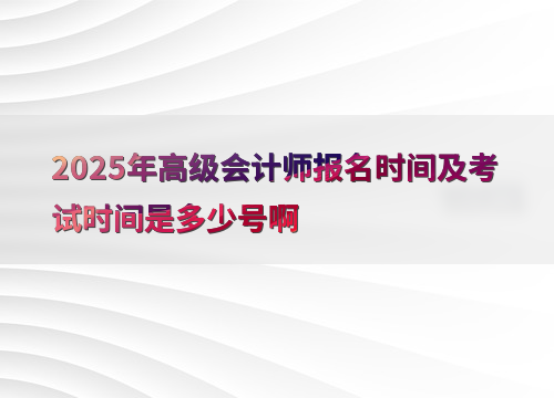 2025年高级会计师考试的报名时间为2025年1月3日至1月24日,各省级考试管理机构会根据自身情况确定具体的报名开始时间。