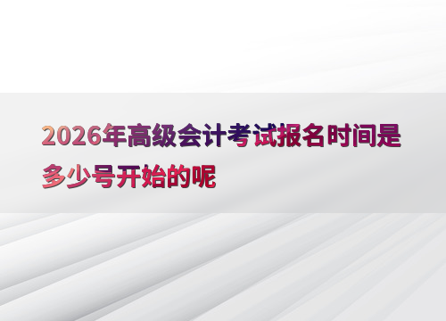 2026年高级会计考试报名时间为1月5日至1月27日,全国统一平台开通报名,各地区可自行确定具体开始时间,但缴费截止统一为1月27日18:00。