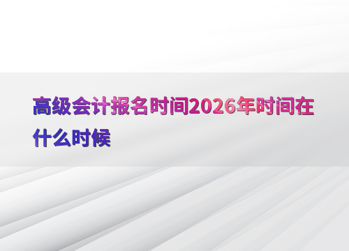 2026年高级会计职称考试报名时间为1月5日至1月27日,全国统一平台在1月27日12:00截止报名,缴费截止时间为当日18:00。