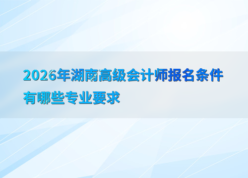 2026年湖南高级会计师考试报名需满足学历与工作年限双重要求。