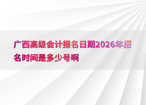 2026年广西高级会计师考试报名时间为1月5日0:00至1月27日12:00,缴费截止时间为1月27日18:00。
