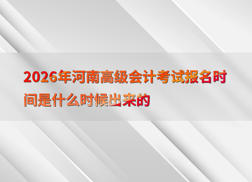 2026年河南高级会计师考试报名时间为1月13日至1月27日12:00,缴费截止时间为1月27日18:00。