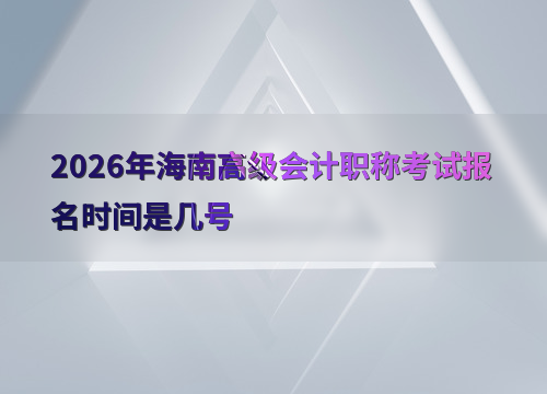 2026年海南省高级会计职称考试报名时间为1月5日10:00至1月27日12:00,缴费截止时间为1月27日18:00。