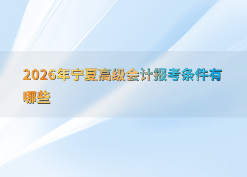 2026年宁夏高级会计师考试报名时间为1月5日至1月27日12:00,缴费截止时间为1月27日18:00。