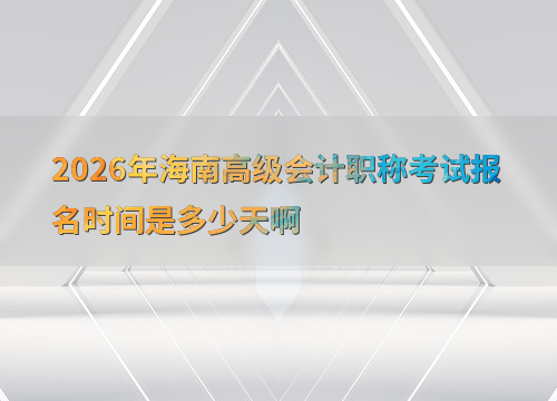 2026年海南省高级会计职称考试报名时间为1月5日10:00至1月27日12:00,共计23天。