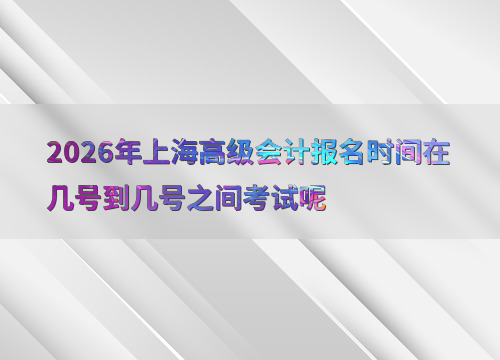 2026年上海高级会计师考试报名时间为1月12日10:00至1月27日12:00,考生需在此期间完成网上报名及缴费操作。