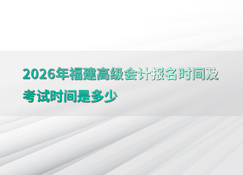 2026年福建省高级会计师考试报名时间为1月5日至1月27日12:00,缴费截止时间为1月27日18:00。