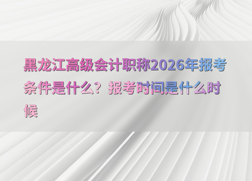 黑龙江省2026年高级会计职称报名时间为1月5日至1月27日12:00,缴费截止时间为1月27日18:00。