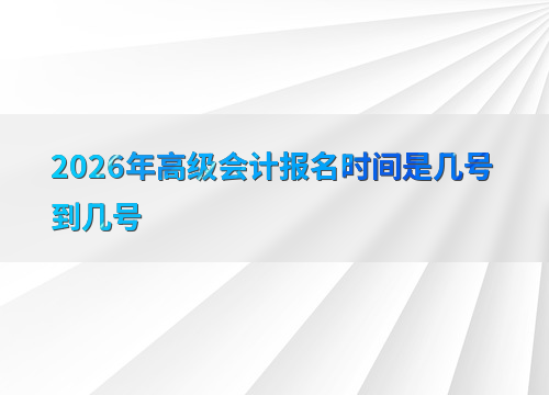2026年高级会计资格考试报名时间为1月5日至1月27日,全国统一平台在1月27日12:00截止报名,缴费截止时间为18:00。