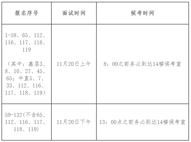 三、注意事项:各位参评人员须携带身份证等有效身份证件,根据《参评人员面试时间安排》准时到达14楼候考室进行签到,否则将影响面试。咨询电话:0451-58592503。
