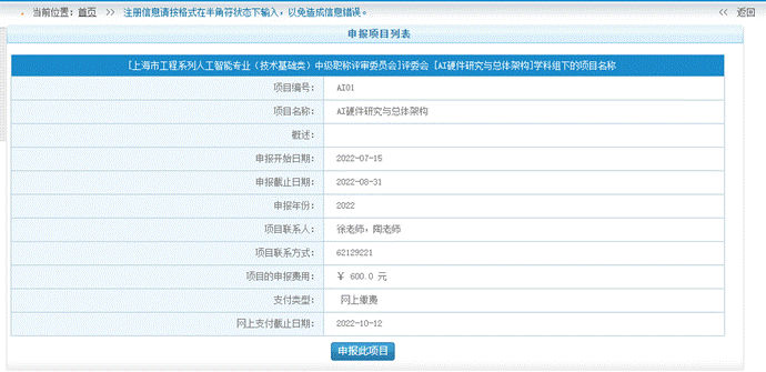 按钮,将项目进行申报,项目申报成功后,所有的信息则不能进行修改操作,只能查看。