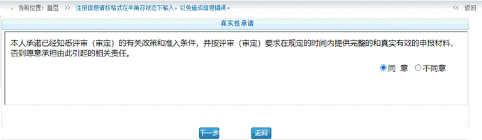 阅读申报项目的“真实性承诺”,阅读完毕后,在窗口的最下方选择是否同意。
