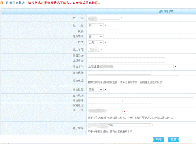 点击左栏【注册信息】,申报人注册信息的完善和修改。