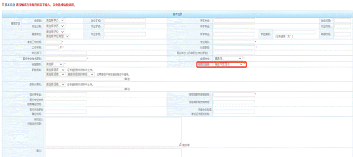 6.“基本信息”栏:除必填项外,其他栏目也应填写完整,若空缺,评审时将视此项为“无”。