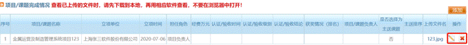 点击左栏【项目/课题情况】,进入上传项目/课题情况附件页面。