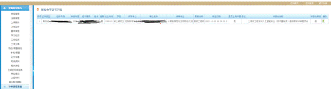 点击左栏【职称电子证书下载】,查看职称电子证书。