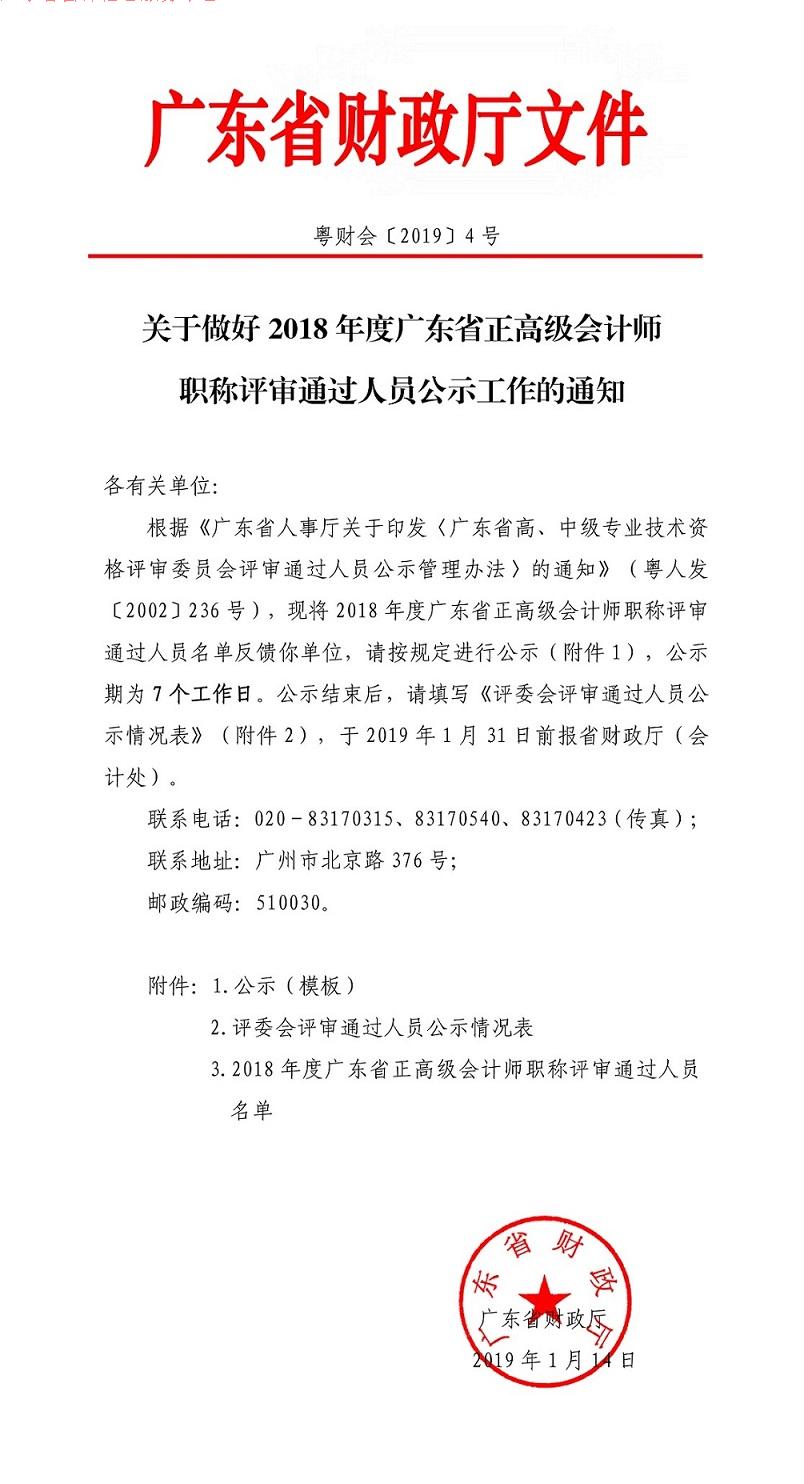关于做好2018年度广东省正高级会计师职称评审通过人员公示工作的通知