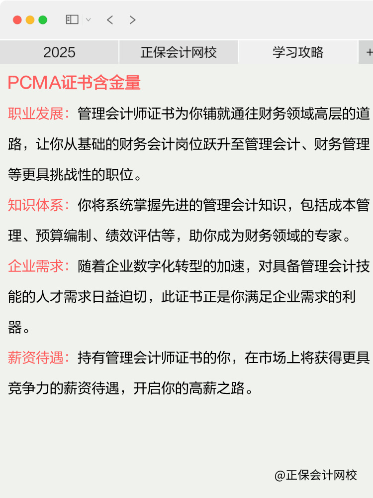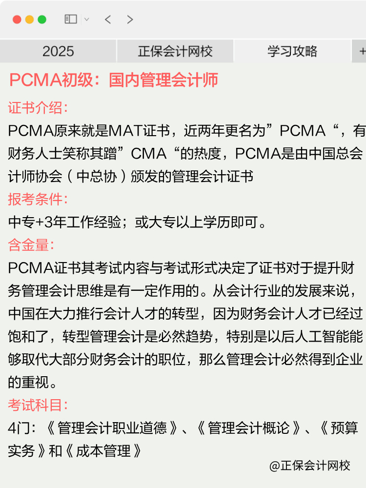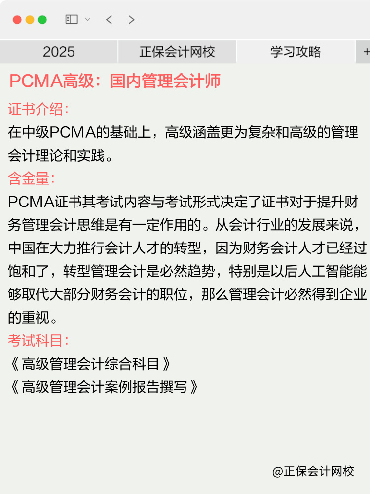 说明:因考试政策、内容不断变化与调整,正保会计网校提供的以上PCMA管理会计师考试信息仅供参考,如有异议,请考生以部门公布的内容为准!