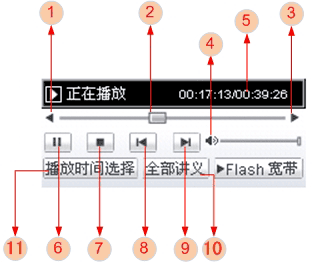 ② 进度控制条,通过拖动选择播放不同时间段讲座;