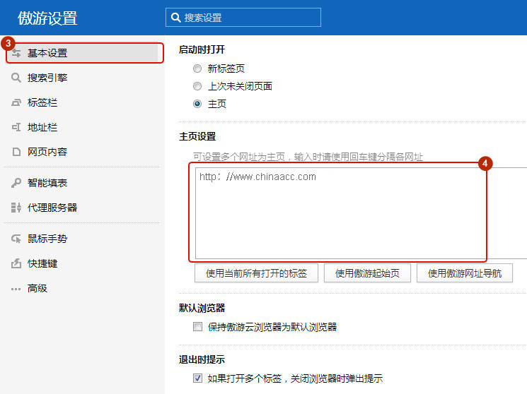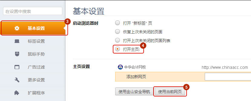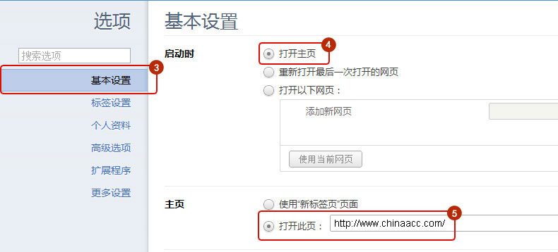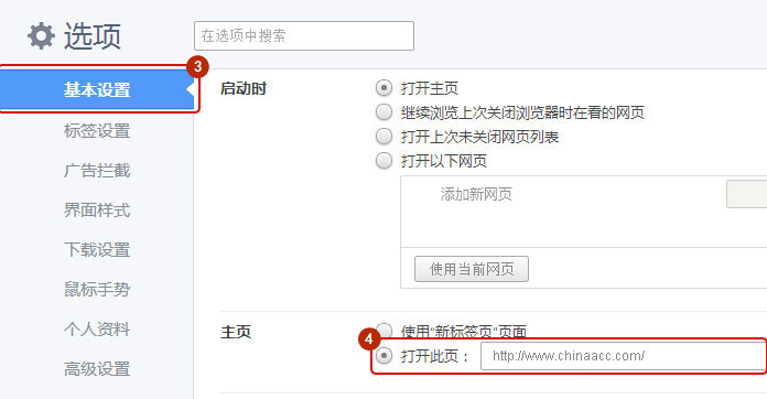 选择基本设置,在主页设置里输入网址。
