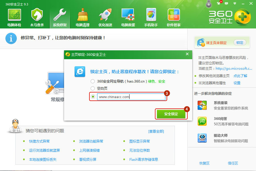注:如输入框为灰色无法输入,请用360安全卫士内锁定主页