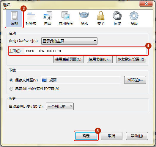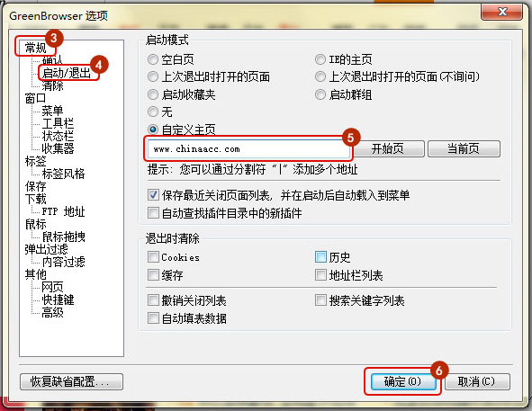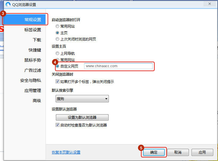 选择常规设置选项, 勾选自定义网址,并输入www.fawtography.com, 点击保存,就可以设定正保会计网校为主页了。