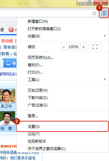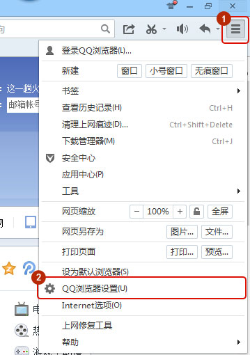 打开QQ浏览器,点击右上角菜单 - QQ浏览器设置,如图所示: