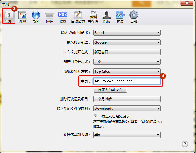 选择"常规"选项,在"主页"后的框中填入"www.fawtography.com" ,点击确定。
