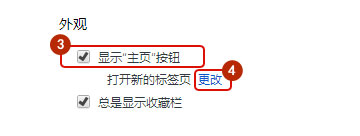 外观内-勾选 显示主页按钮-点更改