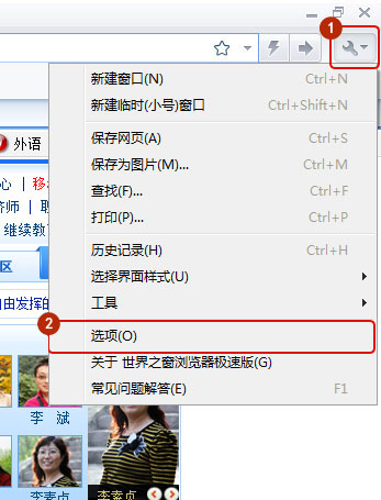 打开360极速浏览器-点击右上角扳手-选项,如图所示: