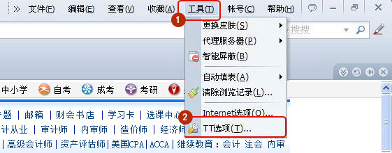 打开TT浏览器,选择工具 - TT选项,如图所示: