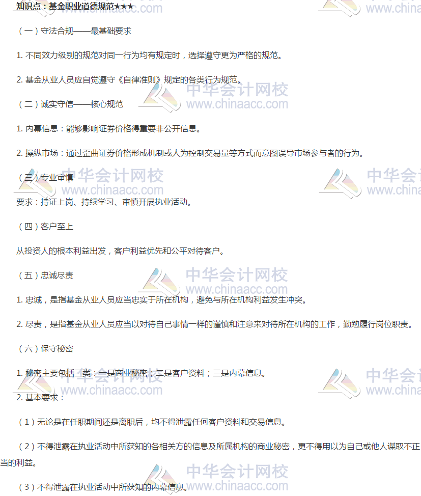 2019年9月份基金从业考试报名时间为7月22日至8月23日。正保会计网校为您收集整理了基金从业资格考试《基金法律法规》考点:基金职业道德规范,快来学习吧!