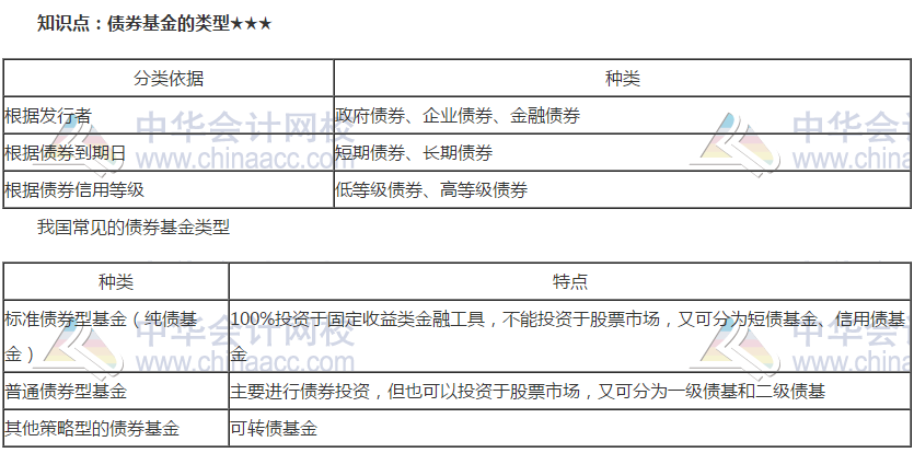 2019年基金法律法规知识点:债券基金的类型