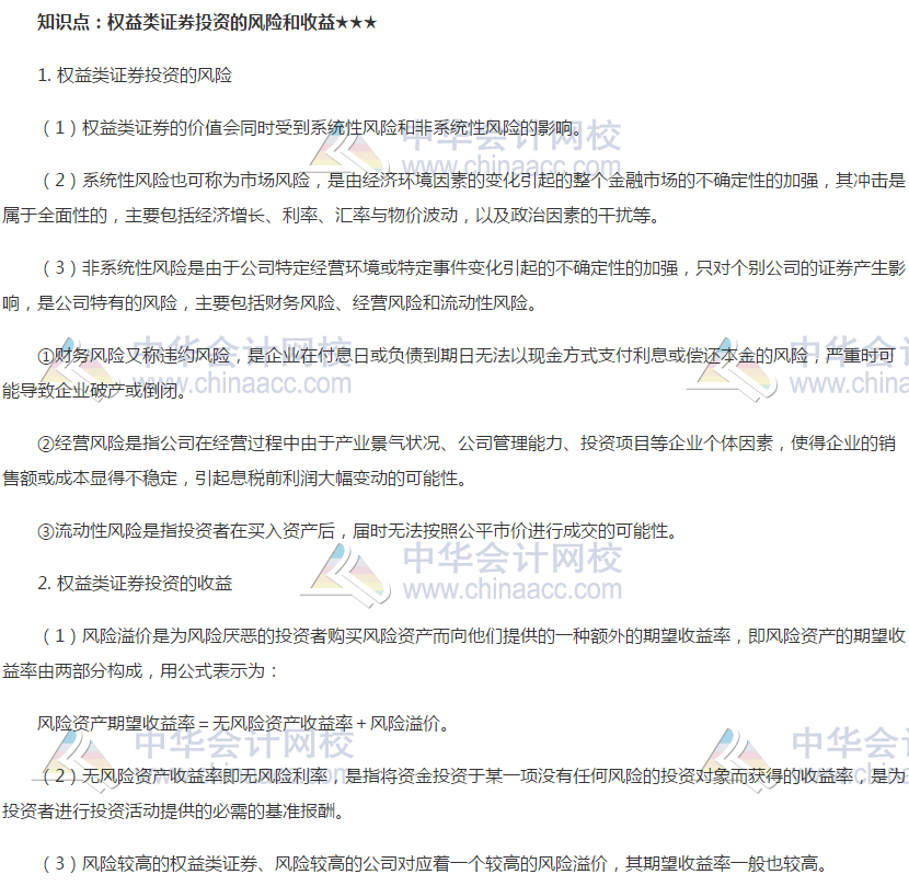 2019年9月份基金从业考试报名时间为7月22日至8月23日。正保会计网校为您收集了基金从业《证券投资基金基础知识》考点:权益类证券投资的风险。基金从业考生们要多练习,才能在考场上所向披靡。