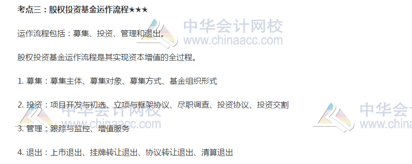 如何才能在金融市场站稳,自然是将基金从业证书拿下了。2019年基金从业资格考试,你准备好了吗?正保会计网校为您收集整理了基金从业资格考试《私募股权投资》考点:股权投资基金运作流程,快来学习吧!