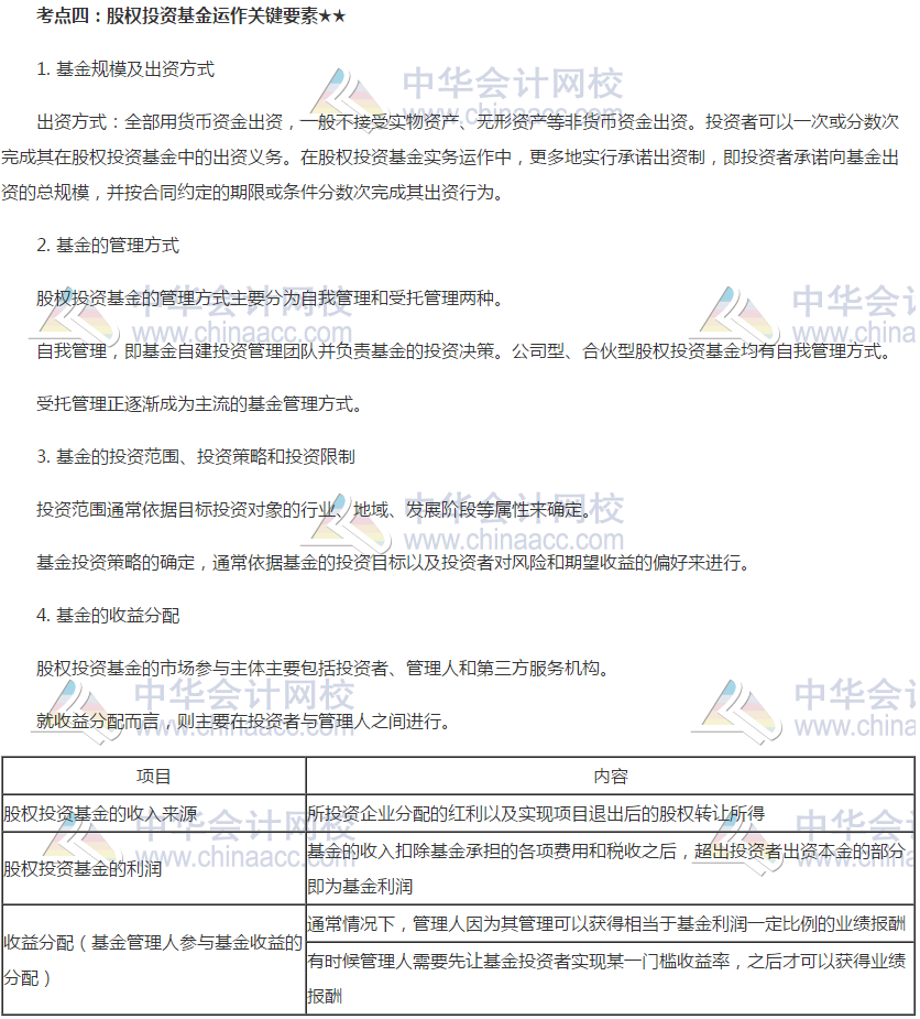 如何才能在金融市场站稳,自然是将基金从业证书拿下了。2019年基金从业资格考试,你准备好了吗?正保会计网校为您收集整理了基金从业资格考试《私募股权投资》考点:股权投资基金运作关键要素,快来学习吧!