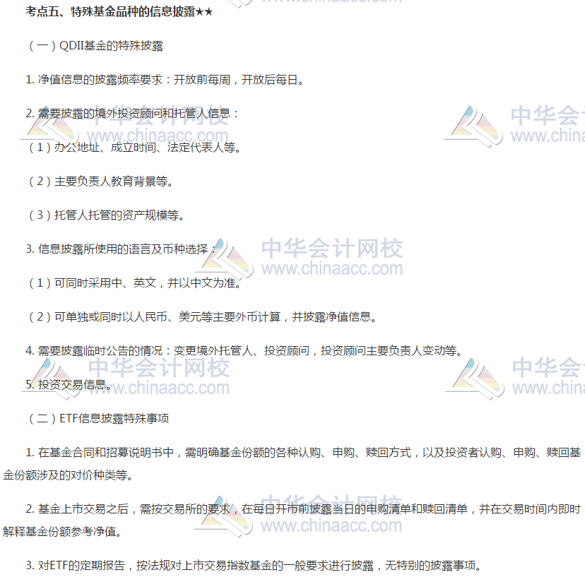 2019年基金法律法规高频考点:特殊基金品种的信息披露