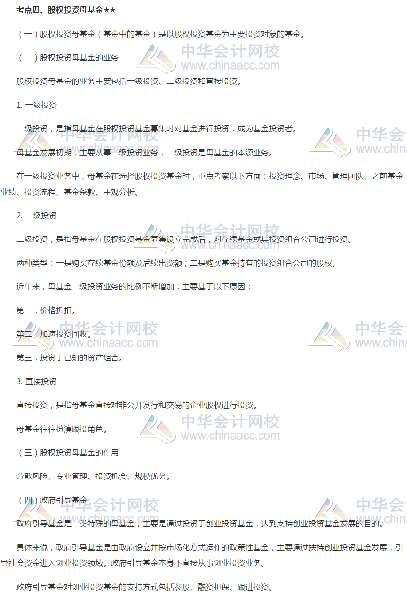 如何才能在金融市场站稳,自然是将基金从业证书拿下了。2019年基金从业资格考试,你准备好了吗?正保会计网校为您收集整理了基金从业资格考试《私募股权投资》第三章高频考点:股权投资母基金,快来学习吧!
