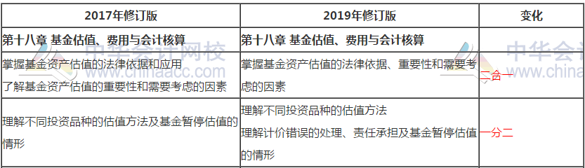 2019年修订版基础从业考试大纲已公布,9月份考试启用——9月基金从业资格考试7月22日起报名。考生可根据新大纲制定自己的学习计划,更有效地学习。以下是《证券投资基金基础知识》第十八章的大纲对比,供学员们参考: