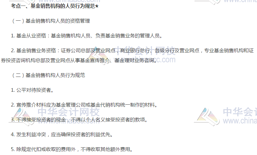 2019年基金法律法规高频考点:基金销售机构的人员行为规范